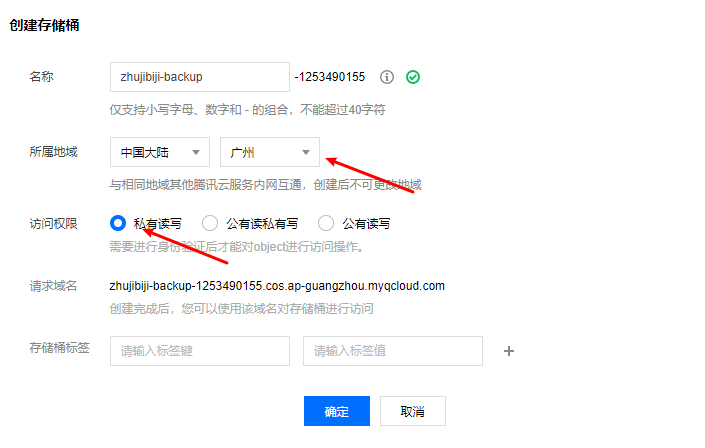 点击云产品 – 对象存储,我们需要创建一个用于存放备份文件的存储桶(类似阿里云OSS中的Bucket)