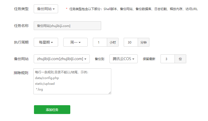 通过以上设定,宝塔面板会在每周备份网站和数据库到腾讯云,并保留最新的三个版本文件