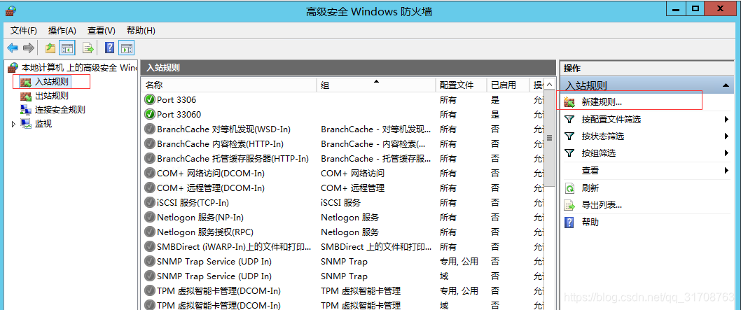 点击高级设置 - 入站规则 - 新建规则。